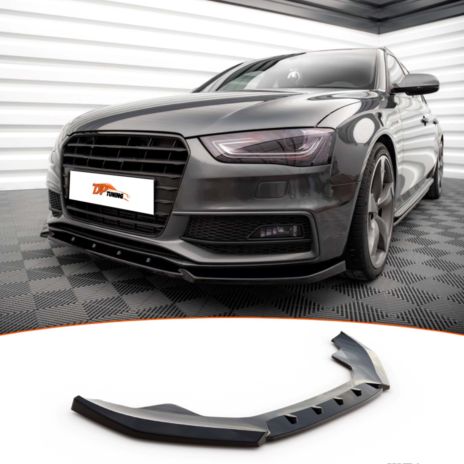 A4 B8 S-Line Max V3 Front Lip Piano Black Vacuum Plastic / 2012 - 2015
