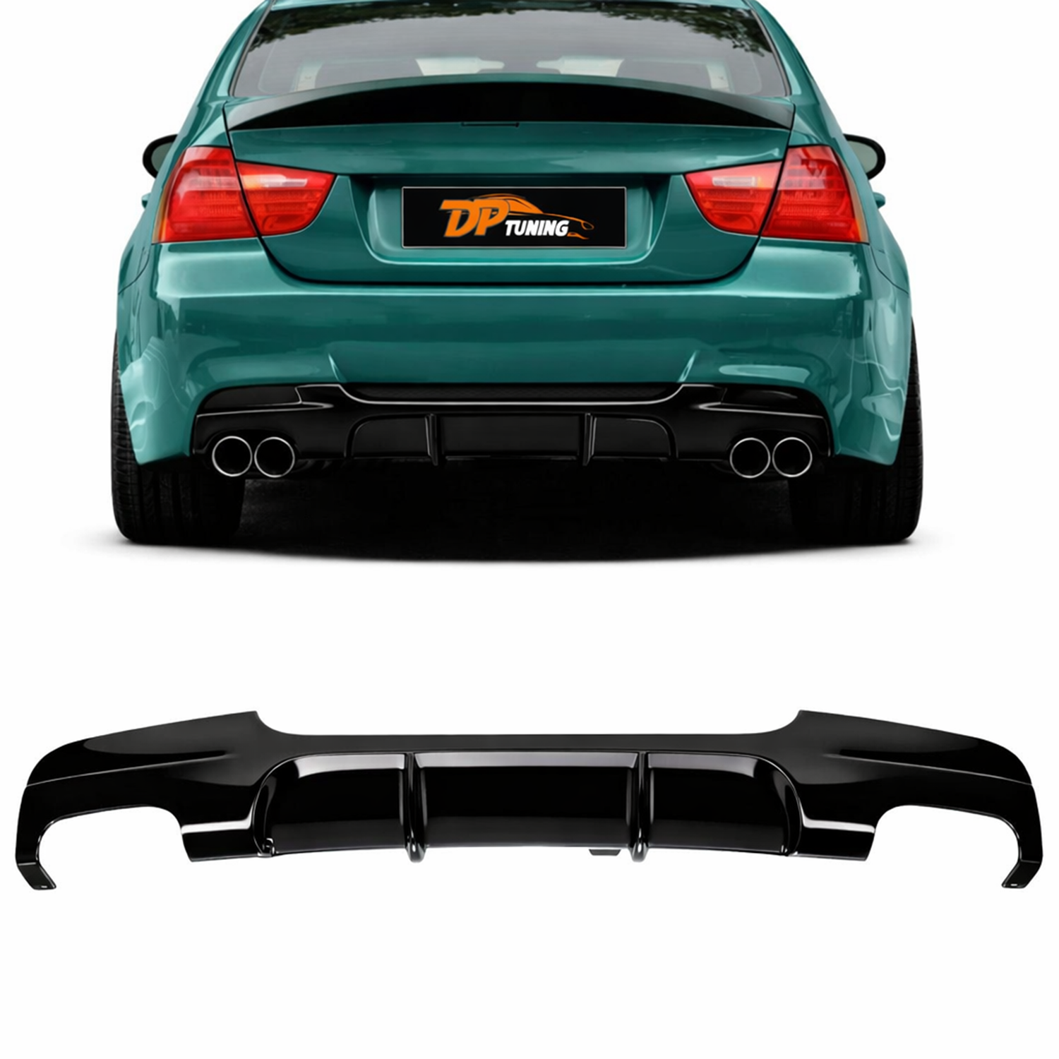 E90 M Technic M Performance Diffuser R+L Dual Output Piano Black Vacuum Plastic / 2004-2011